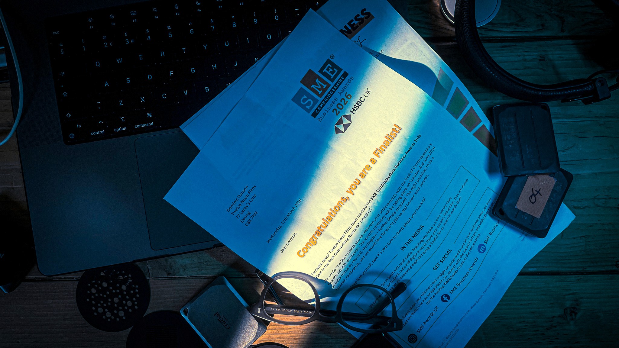 Twelve Noon Films has been shortlisted for Best Enterprising Business at the SME Cambridgeshire Business Awards 2026.